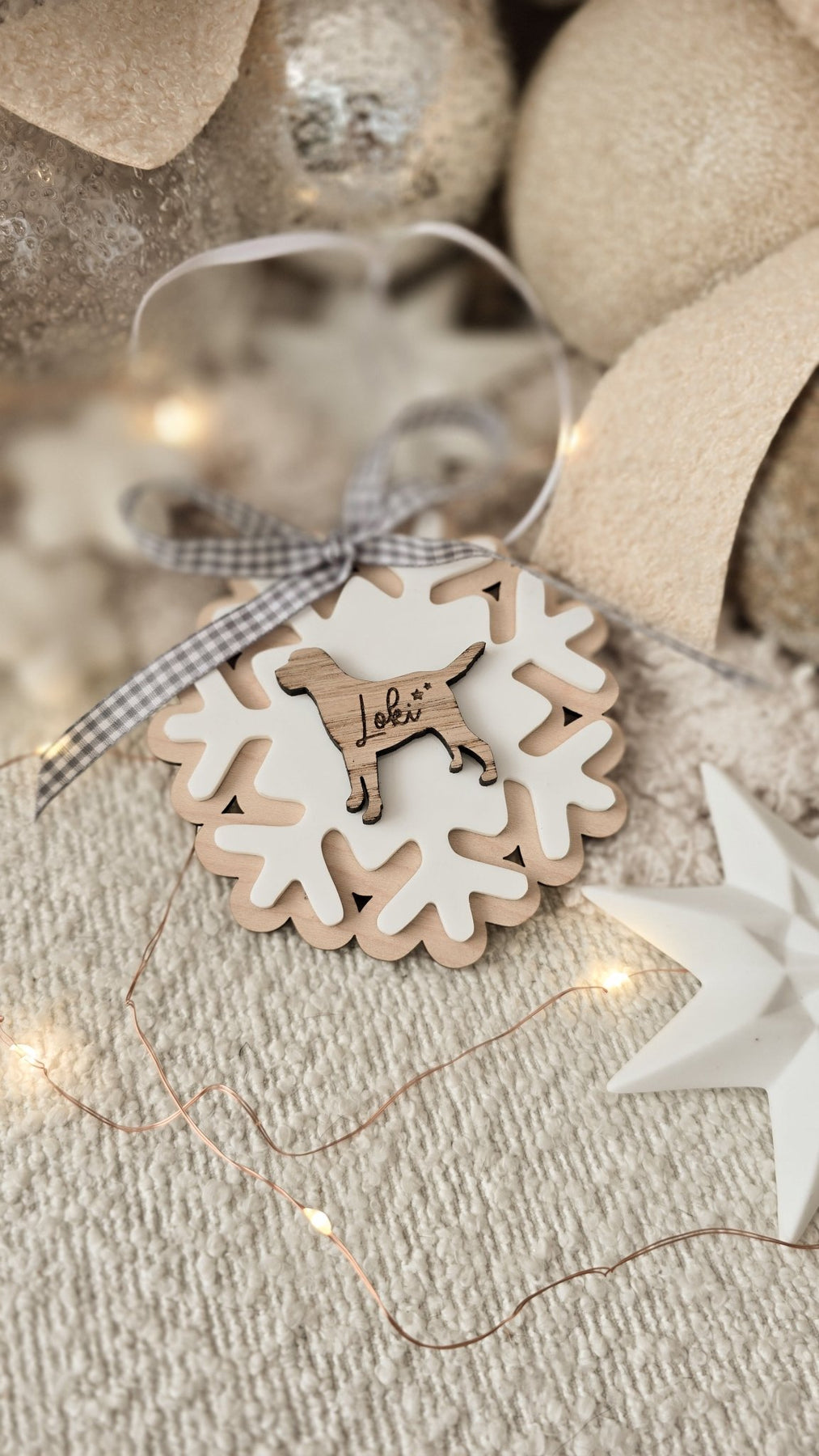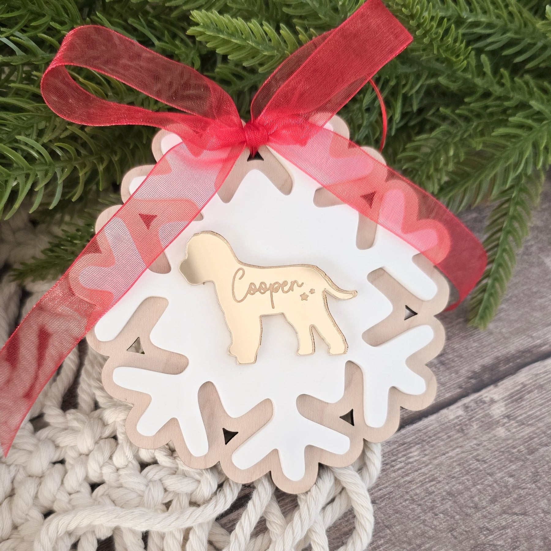 Personalised Dog Snowflake Decoration – Wooden & Acrylic Pet Keepsake Ornament