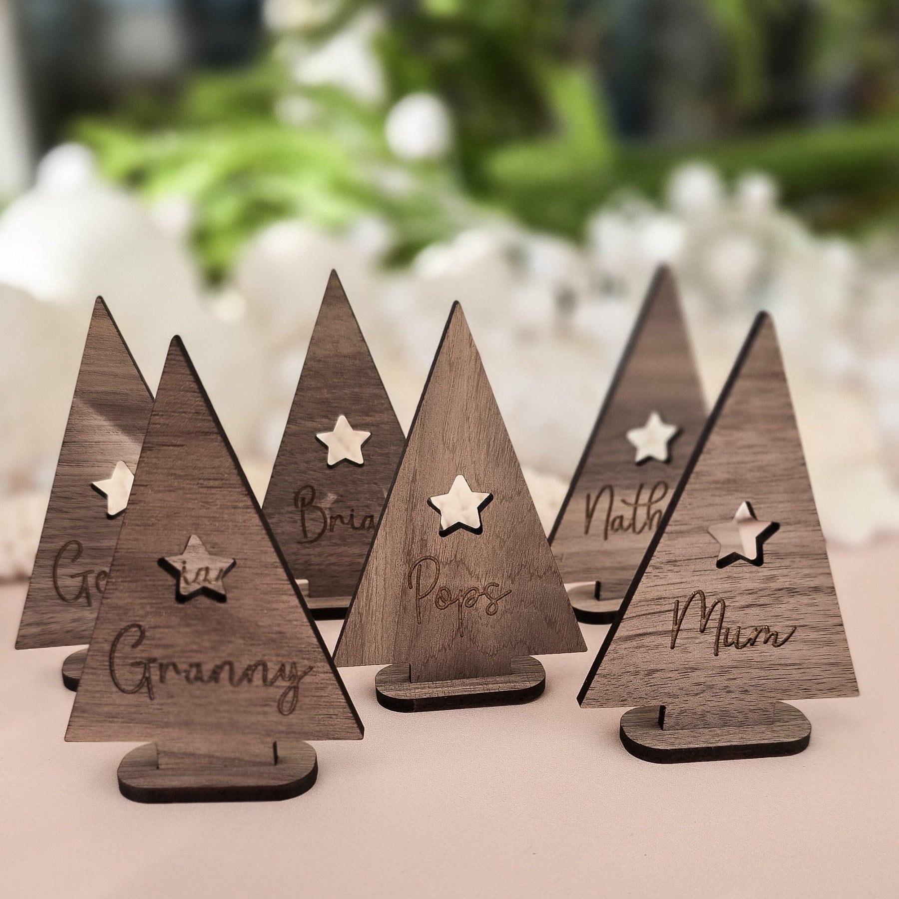 ⭐ Personalised Starry Tree Place Names – Wooden Christmas Table Decorations